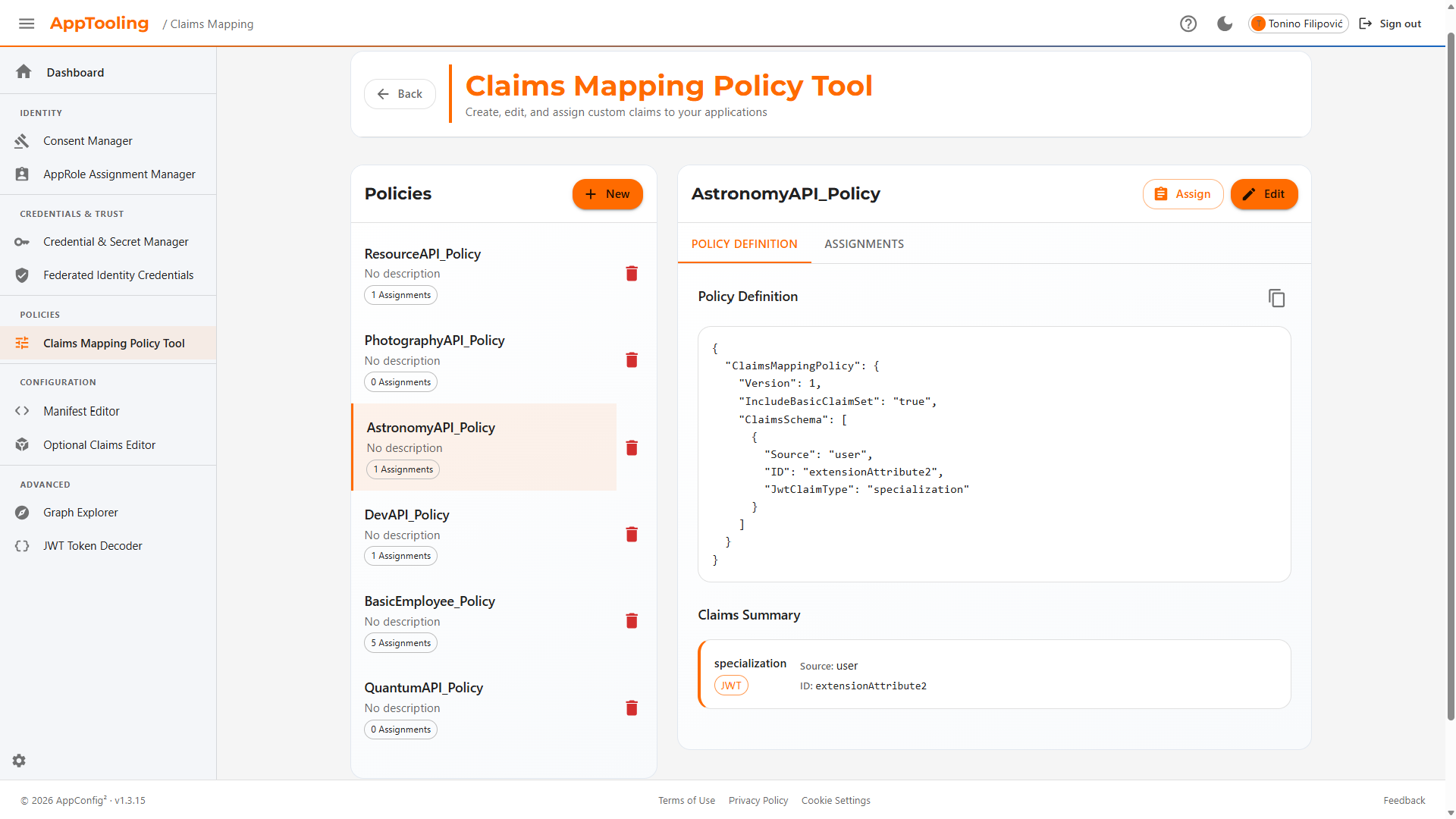 Full CRUD for claimsMappingPolicy objects with built-in templates and SP assignment — without hand-editing JSON policy documents.